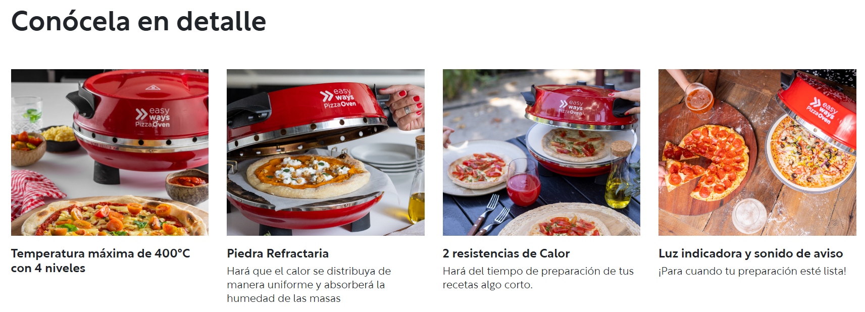 Descubre el horno de pizza EasyWays, la solución ideal para preparar auténticas pizzas a la piedra en la comodidad de tu hogar. Con la capacidad de alcanzar temperaturas de hasta 400ºC, este horno te permitirá disfrutar de una pizza perfectamente cocida en menos de 5 minutos. Diseñado para los amantes de la cocina italiana, en EasyWays combinamos rapidez y sabor, garantizando resultados profesionales en cada uso.
